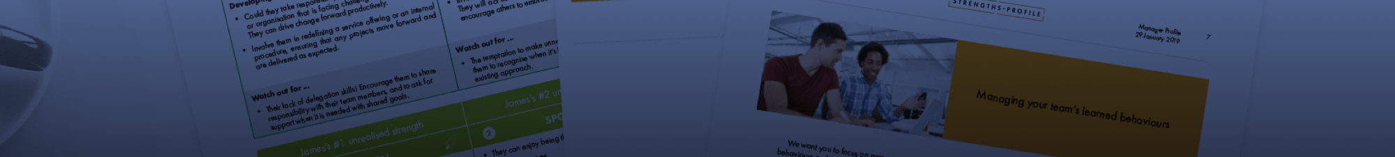The Manager Profile will reveal to you the top 2 realised and top 2 unrealised strengths for each of your team member as well as tailored practical advice on managing and developing these strengths for great performance and success. You will also receive advice on managing learned behaviours and weaknesses within the team.
